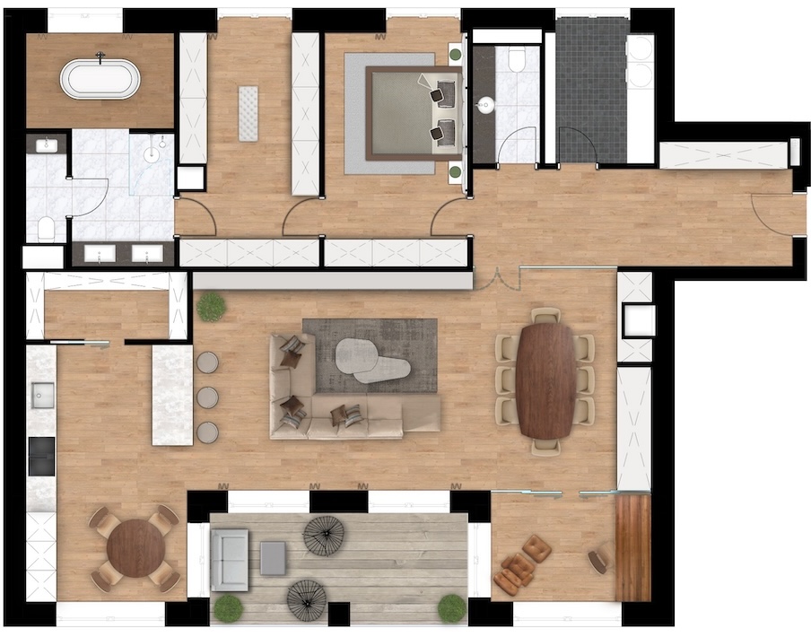Dazu werden sämtliche Einrichtungsobjekte sowie die endgültige Material- und Farbwahl sorgfältig im Detail geplant. Ihre Zufriedenheit ist unser oberstes Ziel, daher zeigen wir Ihnen Ihr Projekt in photorealistischen 3 D Ansichten, um sicherzustellen, dass der Entwurf Ihren Erwartungen entspricht.