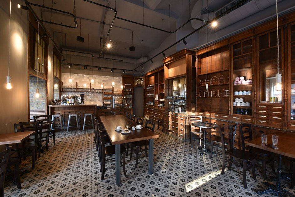Die historische Apotheke im Servitenviertel diente als Ausgangspunkt für die Gestaltung dieses Bistros, und die kreative Idee bestand darin, traditionelle Elemente der Apotheke zu bewahren, diese zu recyceln und dem gesamten Ambiente einen authentischen französischen Charme zu verleihen.