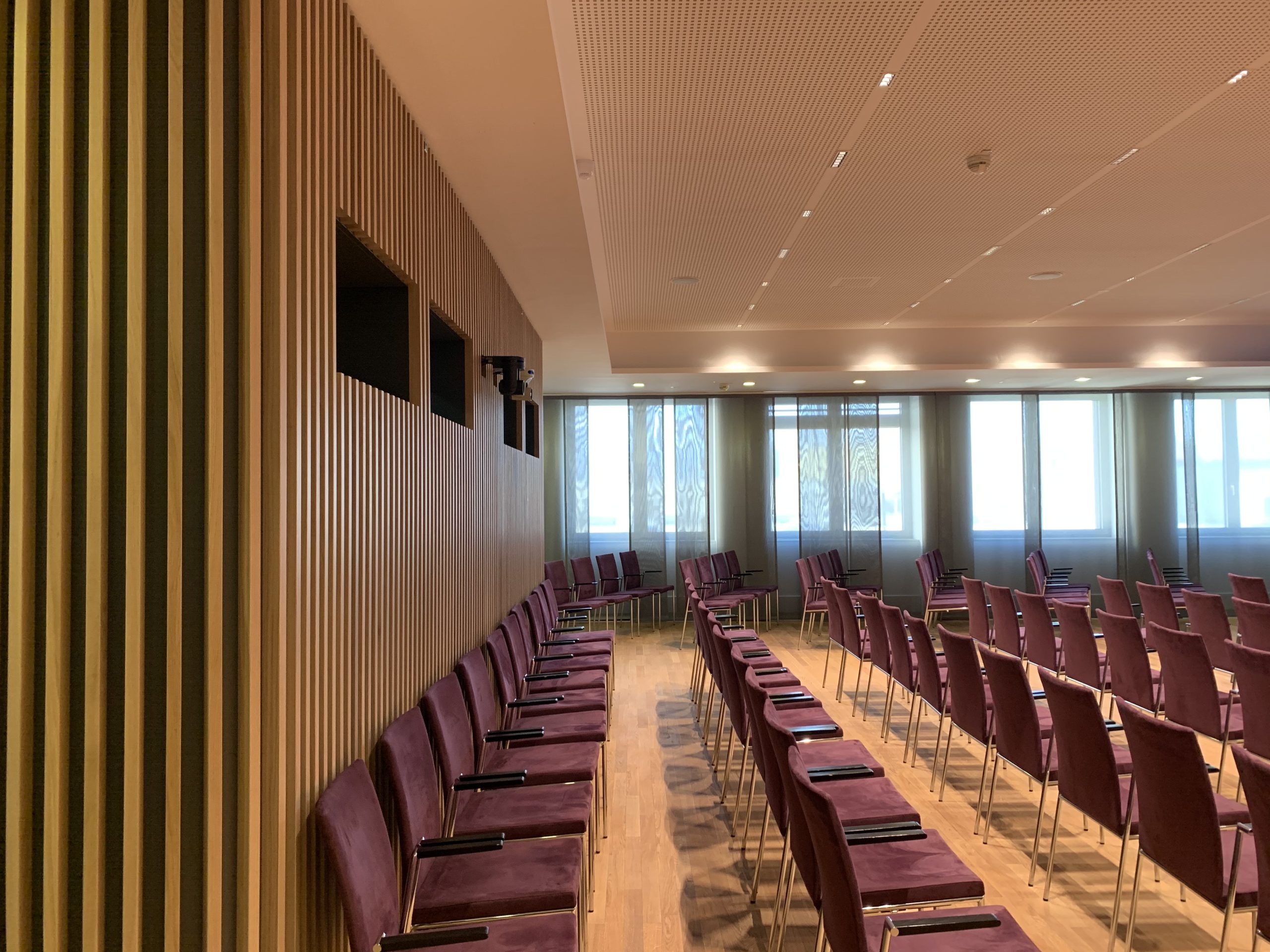 Der neu gestaltete Seminarbereich mit Vortragsräumen für bis zu 200 Personen wurden mit einem warmen und naturbelassenen Einrichtungskonzept umgestaltet, bei dem viel Eichen-Holz und helle Natur-Farben eingesetzt wurden.