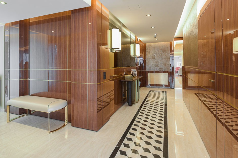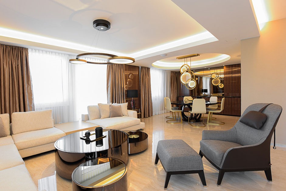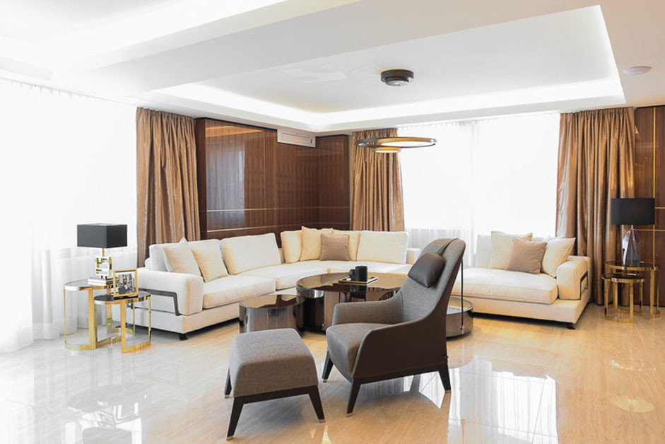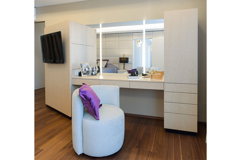 Kombination aus hochwertigen Tischlereinbauten und italienischen Designermöbeln.