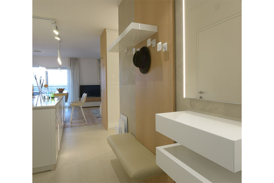Die Farbpalette in hellen Nuancen zieht sich fließend durch die gesamte Wohnung und bleibt größtenteils konstant.